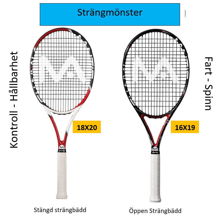 Med flera strängar på tvären får man en mer hållbar strängbädd som är mindre benägen att brista. Priset man får betala för extra hållbarhet, är mindre fart och spinn. En 18 × 20 racket är ett populärt val för spelare som själva kan sätta fart på bollen och därför föredrar kontroll.