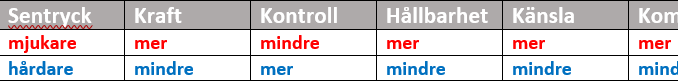 För att få ut det bästa av din racket du måste göra lite mer än bara använda det bästa senan. Valet av att stränga med rätt antal kg är ungefär lika viktigt som valet av ram. Som en generell regel gäller att ju hårdare du strängar desto mindre fart och mer kontroll får du. Med lägre antal kg får du mer fart men förlorar också i kontroll. I vilket fall som helst bör du prova att stränga med olika antal kg för att prova dig fram till vad som passar just dig. För att visa effekten av hur olika hårdhet i strängningen och olika diameter på senan kan ha på din rackets prestanda, har vi skapat följande tabeller: